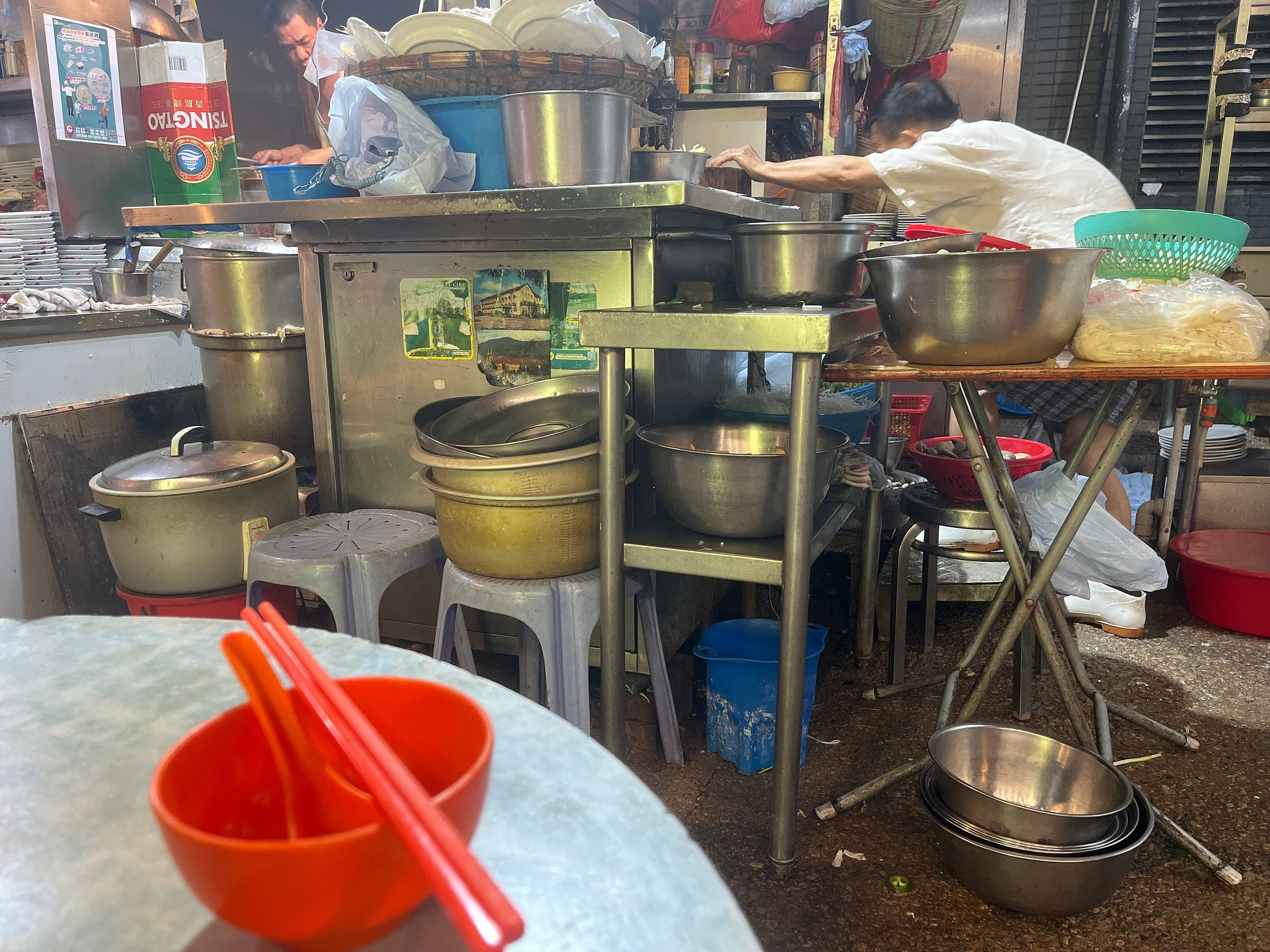 Dai pai dongs, however, are also a vanishing practice. Over their seven-decade-long presence in the city, many have shut down due to government requirements, most often for hygiene controls. As a regular patron at these restaurants, I don’t doubt that cleanliness is not the main priority (over dinner, the only “dishwasher” I could see was a red plastic basin filled with plates, water being hosed into it as it lay on the pavement). But it’s a small price to pay for the wok hei—a complex charred flavor you can only taste when food is cooked in a piping-hot, kerosene-fueled wok.