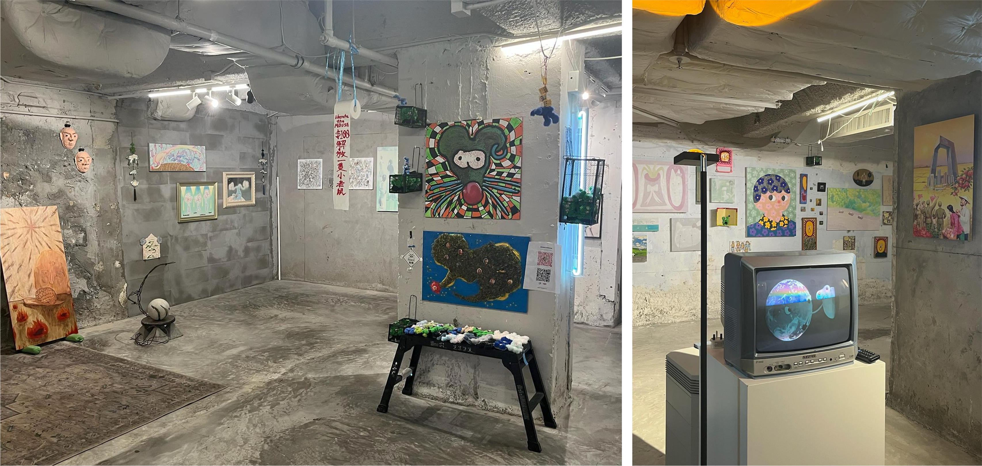 N+ is not your typical art gallery. It has no physical location, and so instead, hosts shows in improvised venues around the city at an unspecified frequency, much like a wandering circus troupe. This year’s exhibit was held at Heath Mall, in the basement of Chungking Mansions—the setting of Wong Kar-wai’s Chungking Express (1994) and Fallen Angels (1995)—often (mistakenly) denigrated as Hong Kong’s ‘ghetto.’