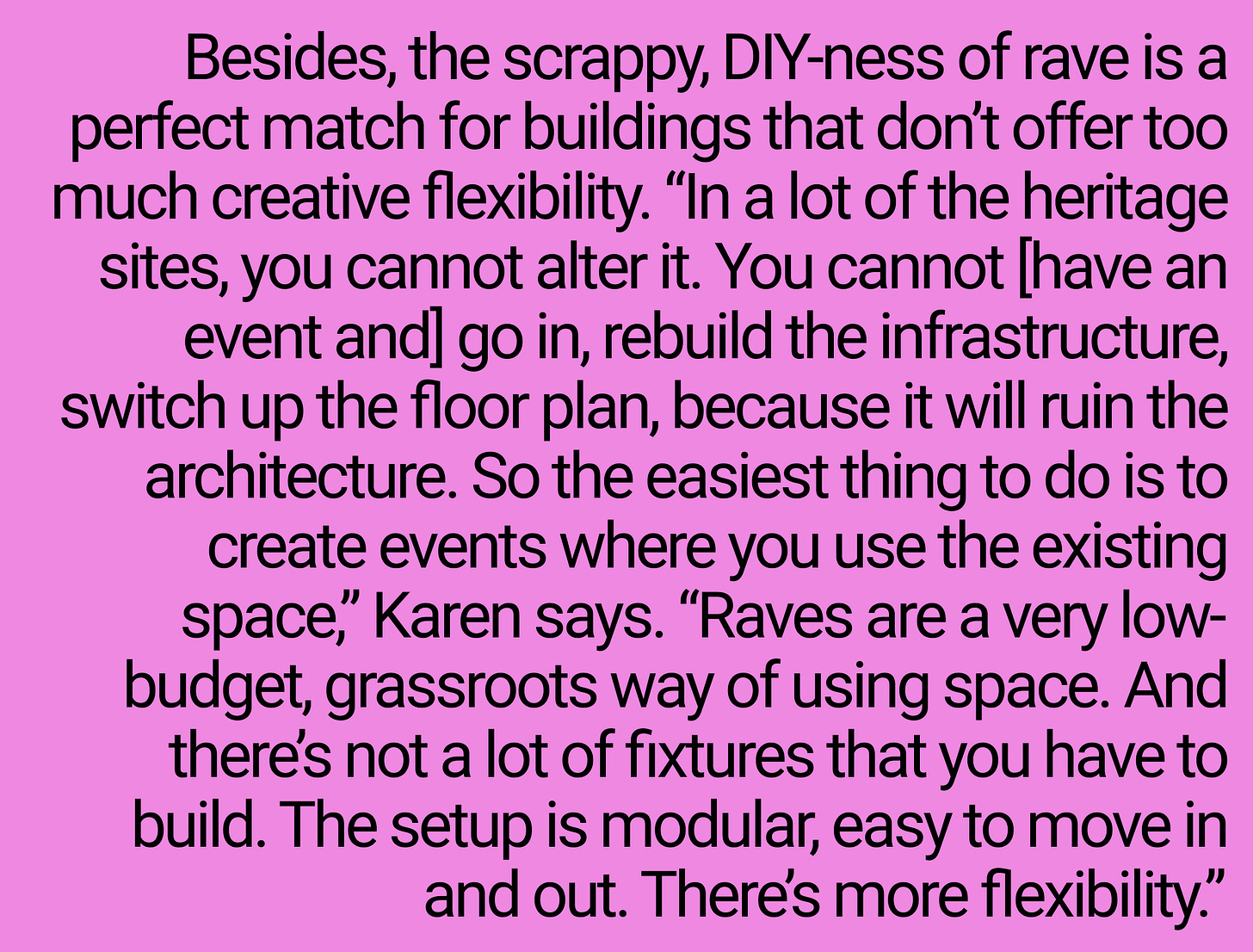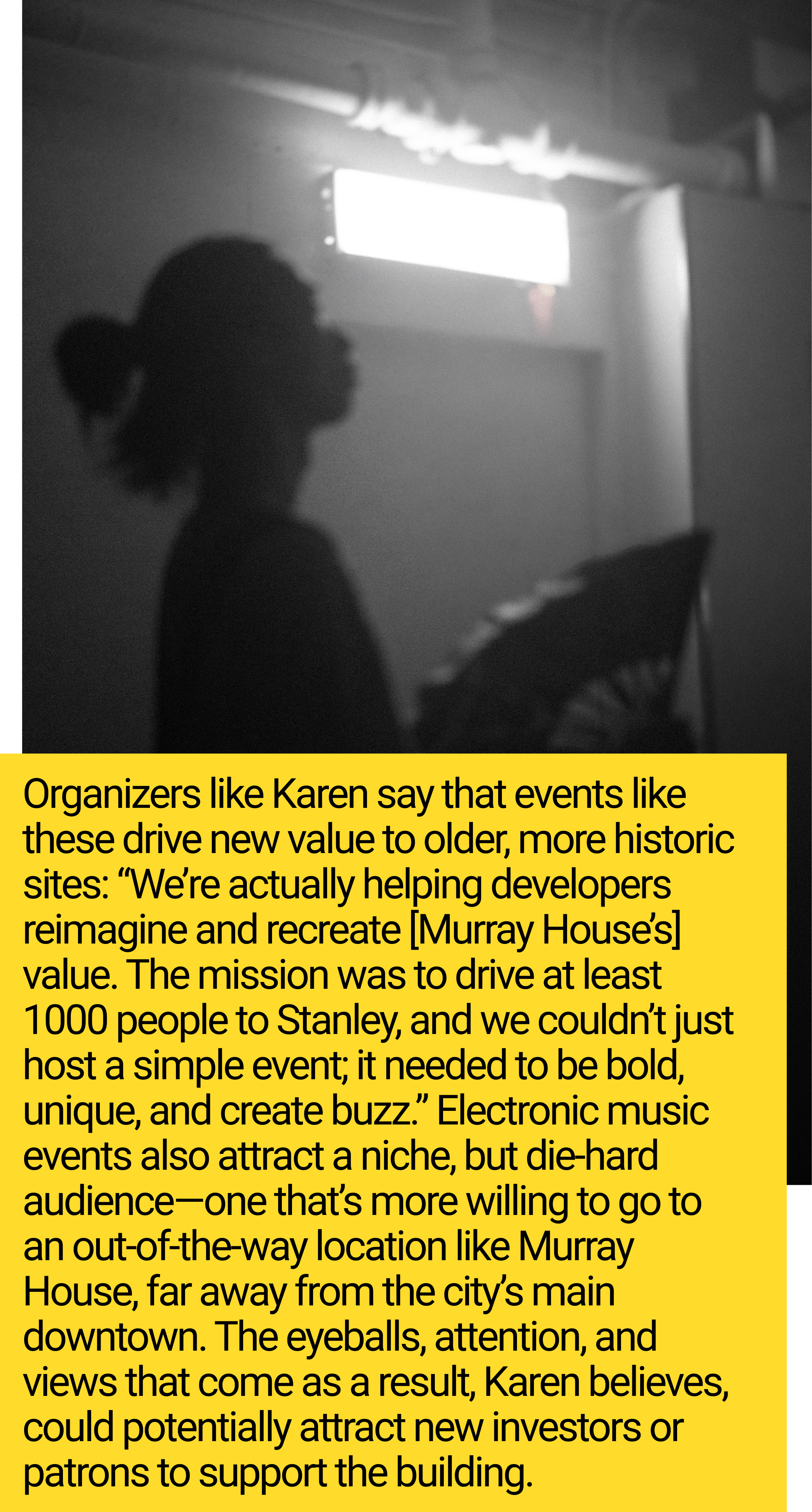 I’m inclined to think that the feeling Wark describes—the collapse of history and future into the present—is elevated when the rave is at a historic building, especially at Murray House, where a dark history still lingers.