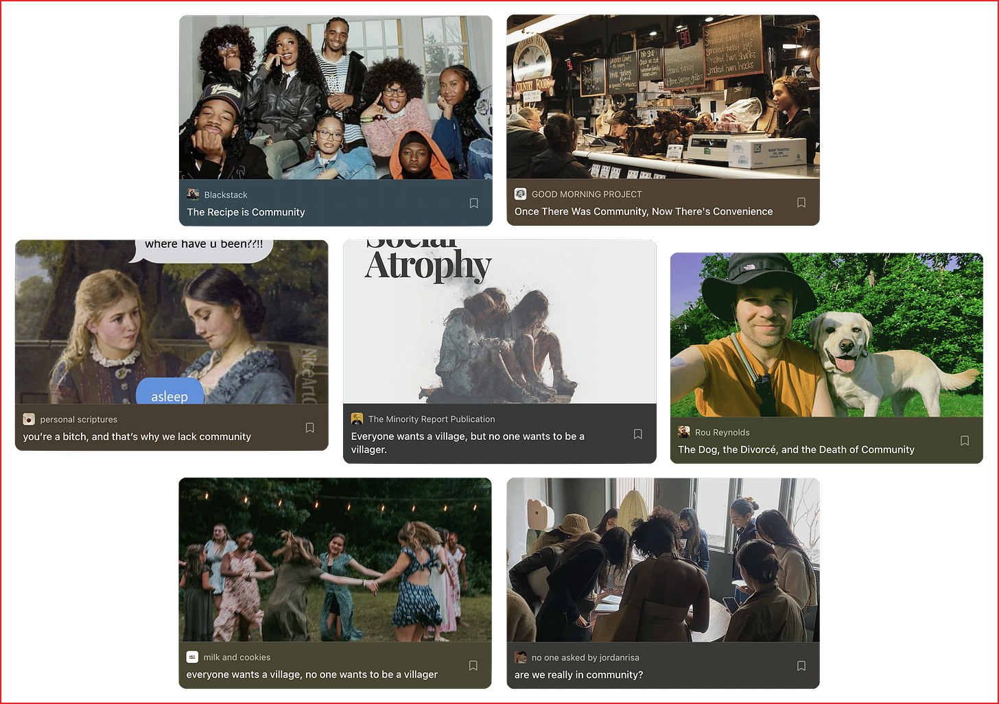 The word “community” was inescapable in 2025. The general thesis that bringing people together would heal our collective loneliness crisis was repeated ad nauseam by a countless number of writers, influencers, and thought leaders. The idea is numbingly simple: have more communities, and we would have a functional society again. Fewer phone-brained teenagers with 11-hour screen times, and instead a more happy and fulfilled population.