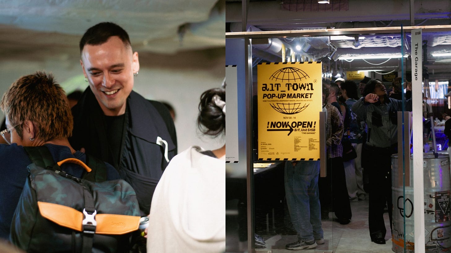 Ventilation inside was poor. The basement was dusty, and while listening my eyes were in a constant itch. But the discomfort didn’t stop the panel talk’s organizer, Critical Mass, from squeezing in a marketplace of twenty-five independent vendors inside the venue simultaneously. Some of these included a cybersigil tattoo artist, a streetwear brand uprooted from the Hong Kong bouldering community, and a futurist jeweler. Both the panel and the marketplace marked the opening of ALT TOWN, a week-long underground celebration for designers and artists in the city. In line with Bray’s quote, the event’s ethos was simple: create a space for new subculture in Hong Kong; to chart the city’s creative future.