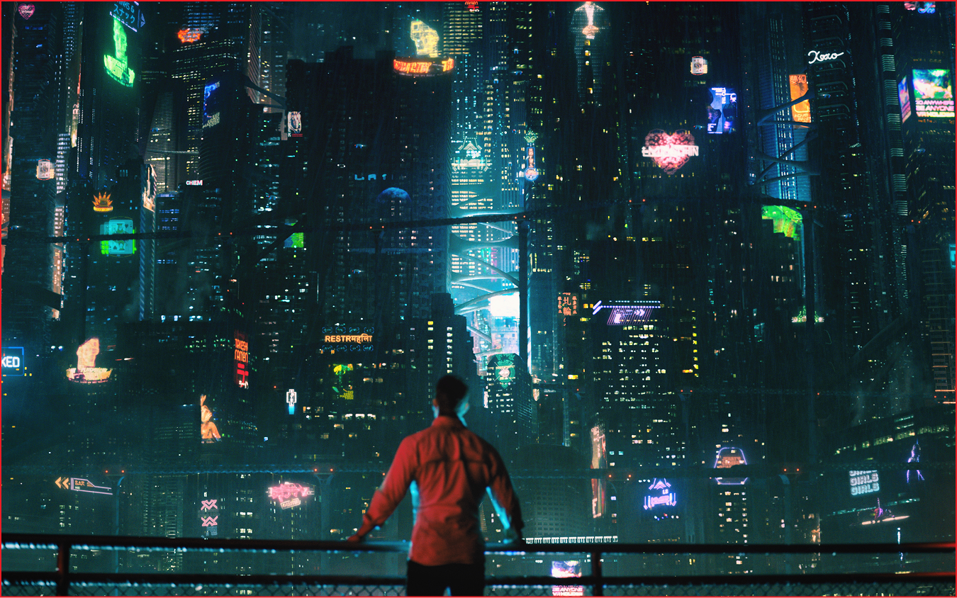 Indeed, there’s an allure to cyberpunk that maintains its staying power. A frame in the TV series Altered Carbon, when the protagonist Takeshi Kovacs (Joel Kinnaman) stares at the dystopian metropolis of Bay City, might capture this best: Here, a lone renegade is seen hypnotized by company logos and bright colorful ads. Living under complete corporate rule and insatiable capitalism might induce terror, but who knew that billionaires and monopolies could make a society verging on collapse look so sexy?