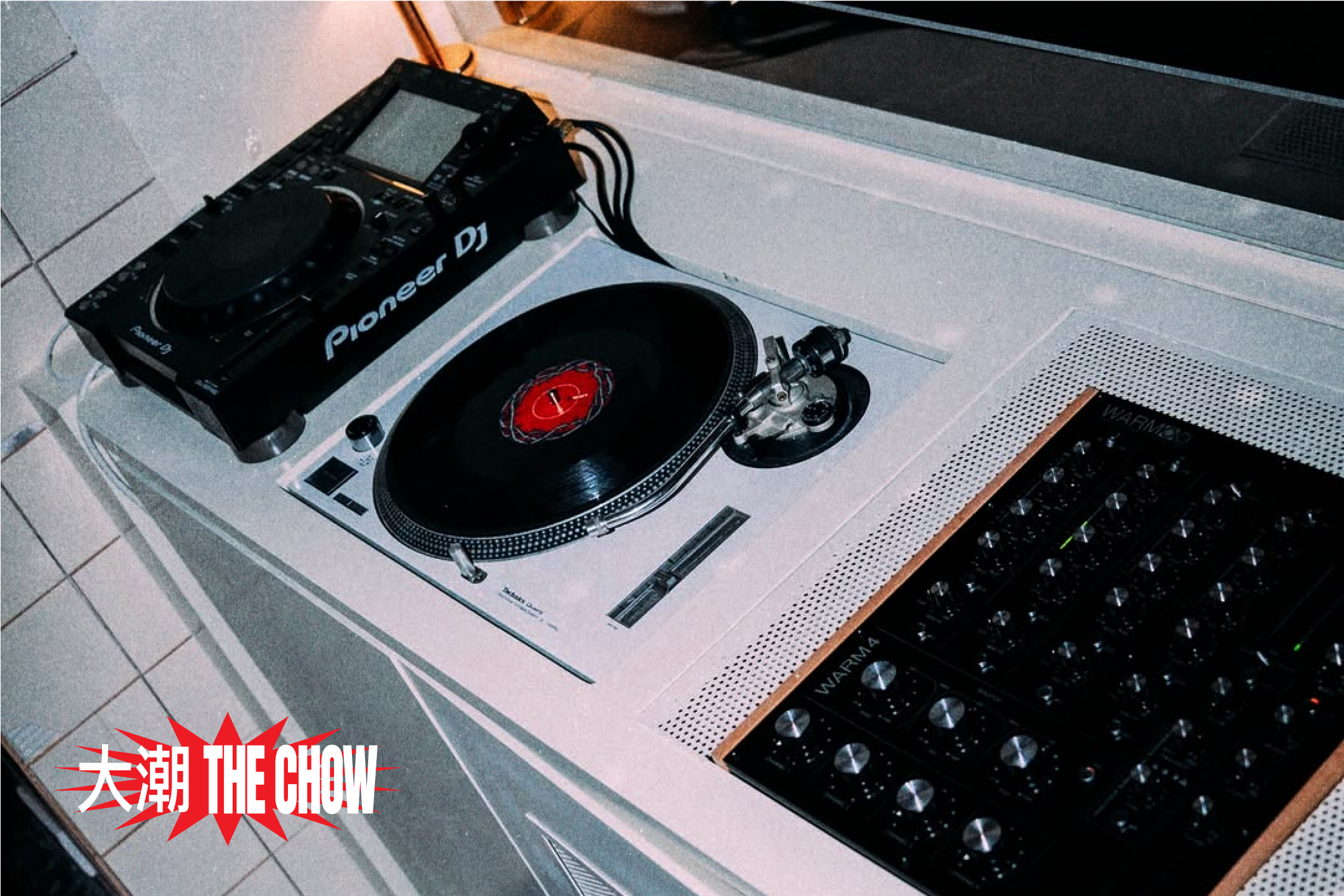 Dark red and bold, a large sign with the words “ON AIR” hung on the open-air ceiling. What was on cue? Not the vinyl records of ’90s classics on the wall-attached shelf. A ditzy house beat and thumping bass emanated through an almost-human-sized vintage Altec speaker. At 5 p.m., it was still early; the crimson leather booths were waiting to be filled. But around 8 p.m., I’m told, DJs man the decks in the middle of the room around to play in either vinyl or digital.